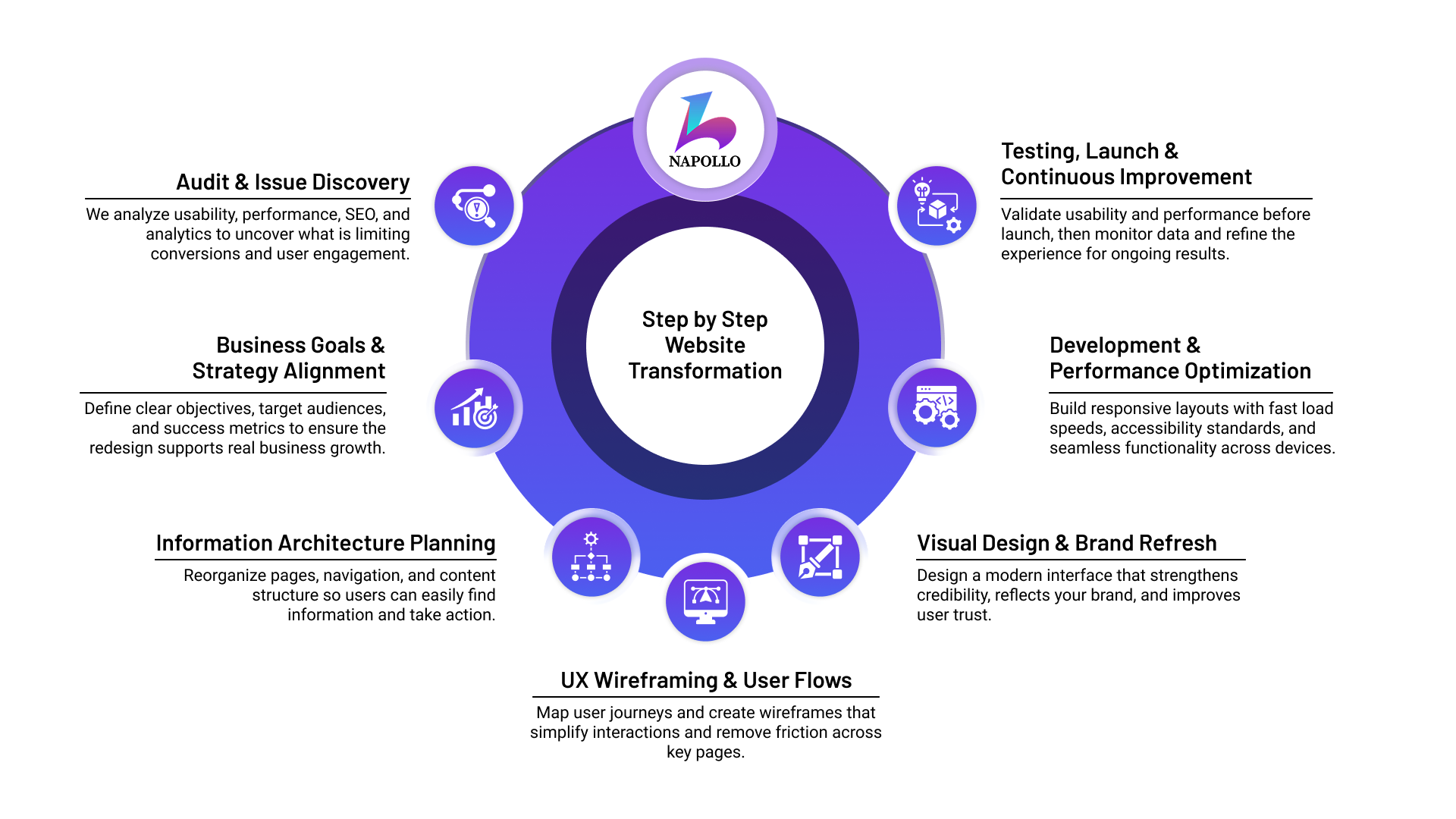 Our team analyzes what’s not working, restructures user journeys, and rebuilds interfaces to align with current expectations. The result is a faster, clearer, and more effective website.