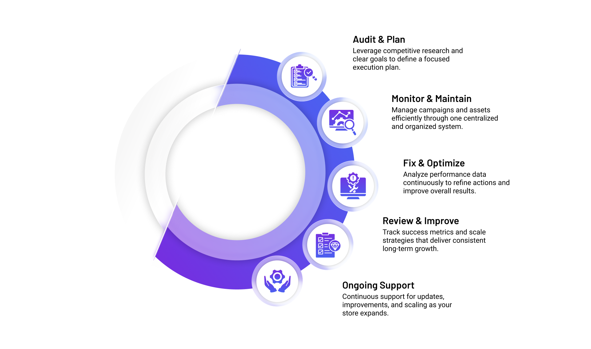 Running a Shopify store requires constant care. We handle updates, fixes, and monitoring so your store stays secure, stable, and ready for growth.